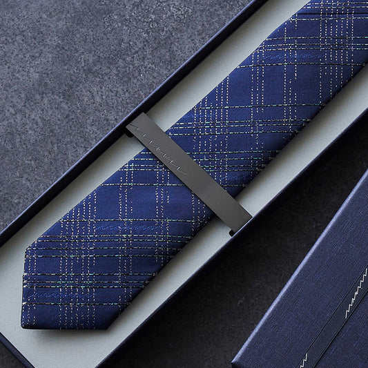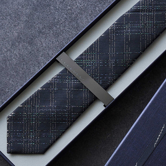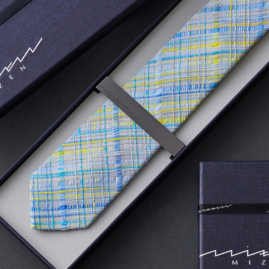 スラッシュタイ/メンズ 螺鈿織 チェック MIZENロゴ 紺 ※ギフトボックス別売