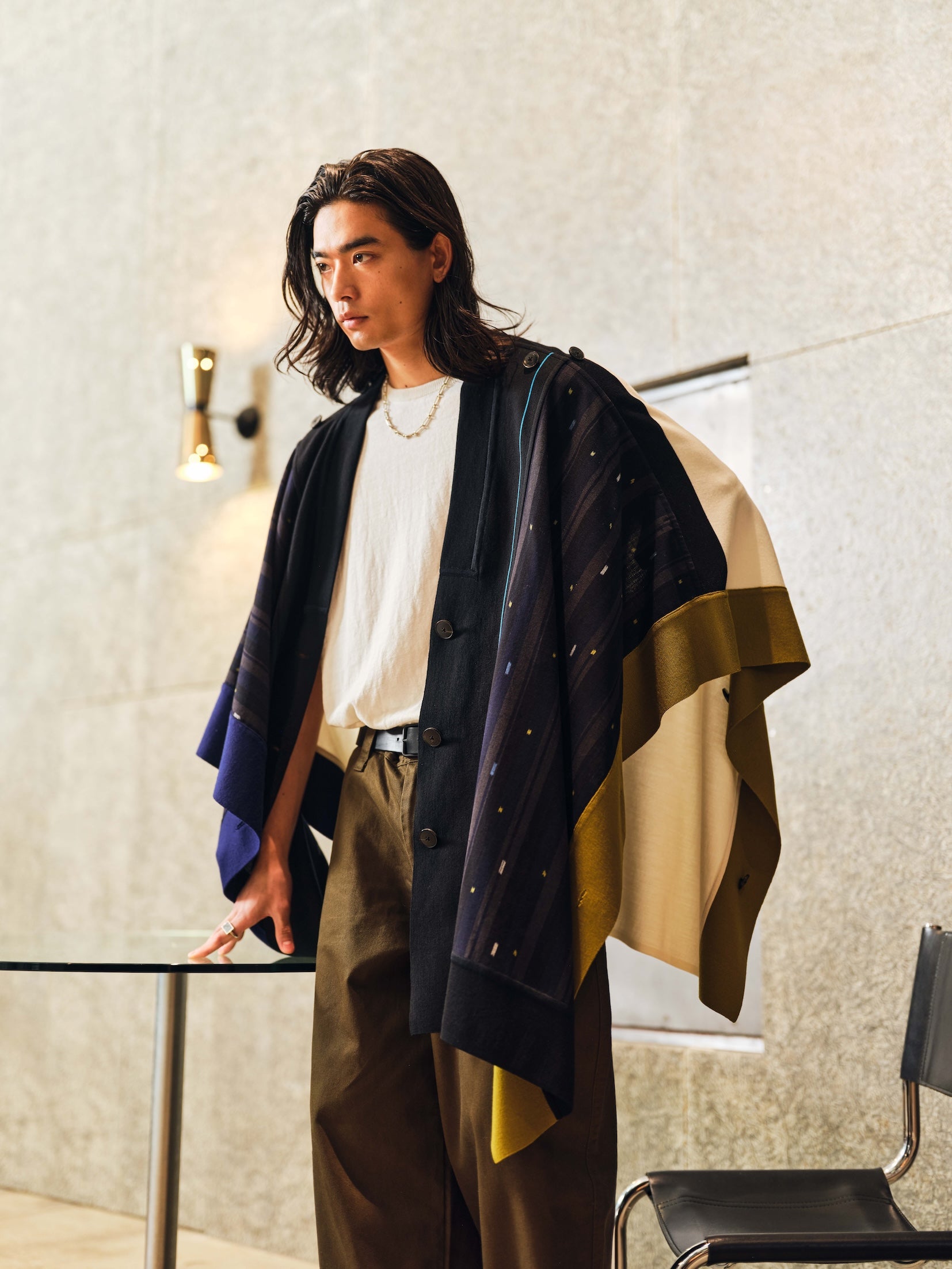 ファッションの中では稀少な日本の伝統技術を縫い糸に託し、縫い目そのものをデザインへと変えた特別な一枚です。