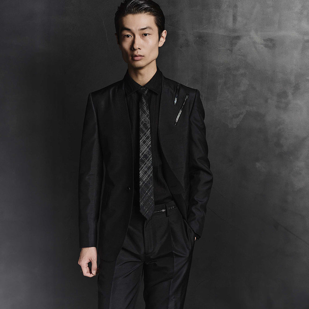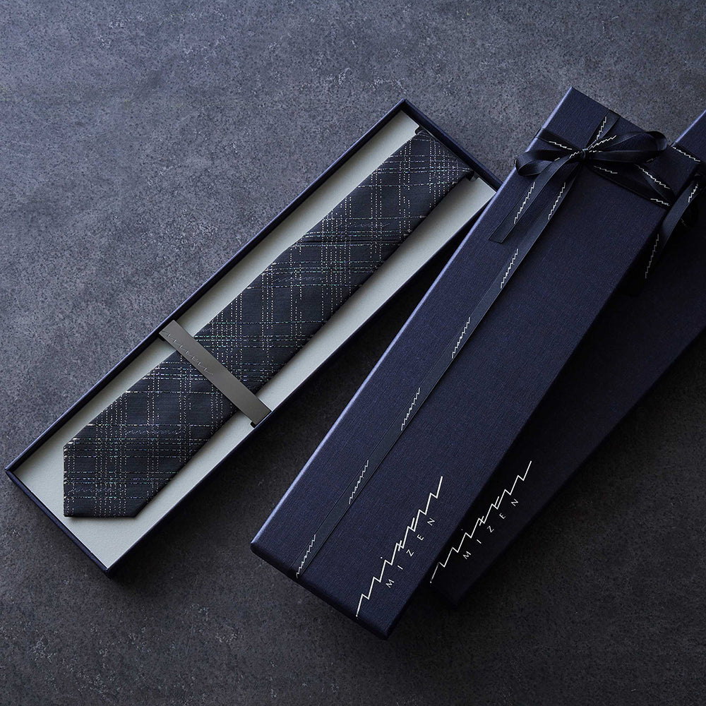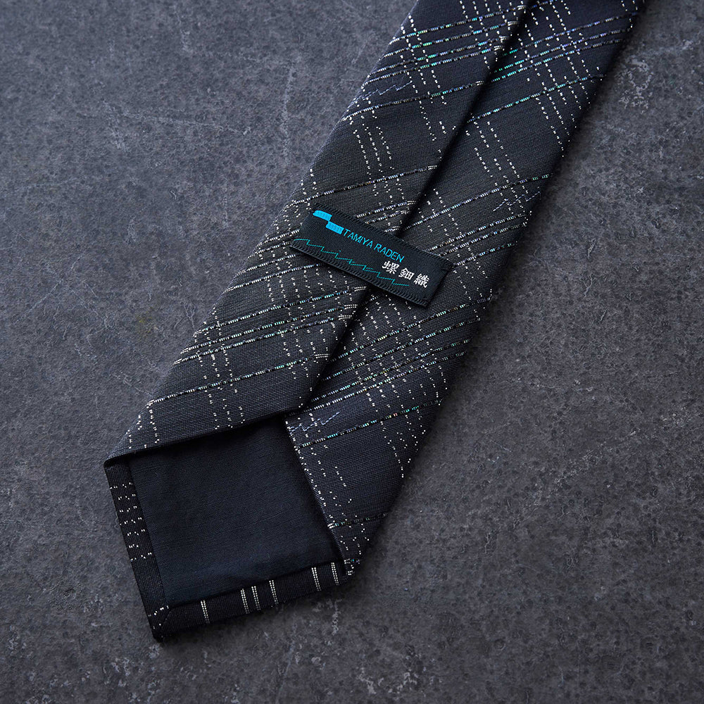Slash tie/Men's mother-of-pearl weave check MIZEN logo black