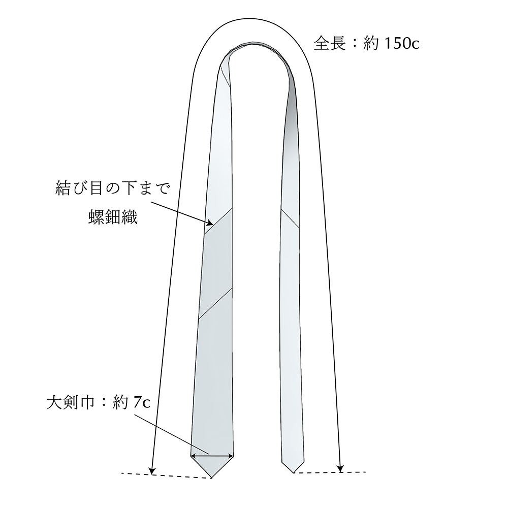 The diagonal cut, making use of the width of the mother-of-pearl woven obi fabric, which is approximately 32cm wide, is an accent.