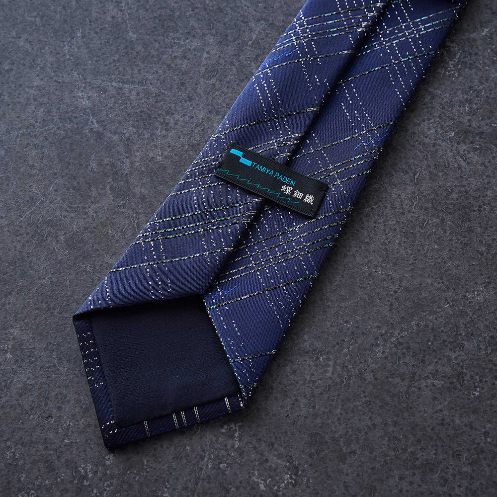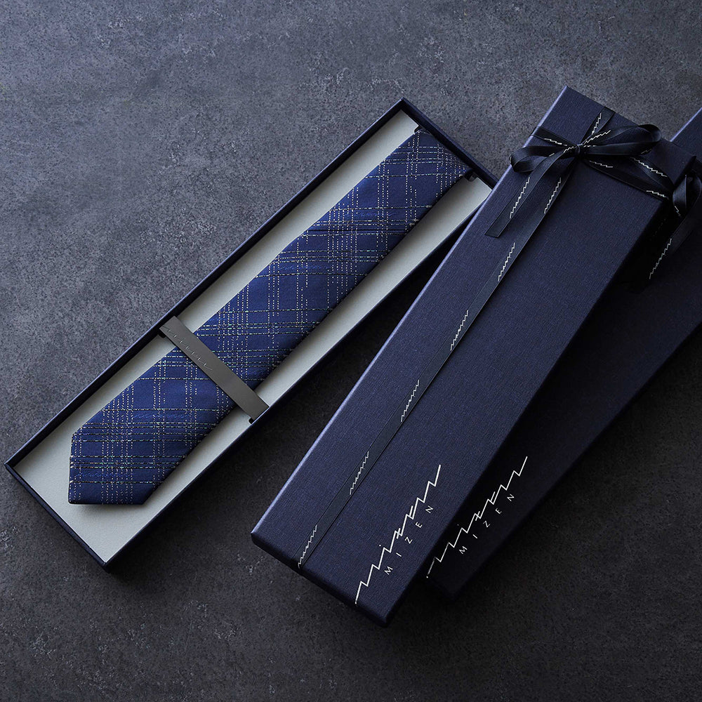 Slash tie/Men's mother-of-pearl weave check MIZEN logo navy