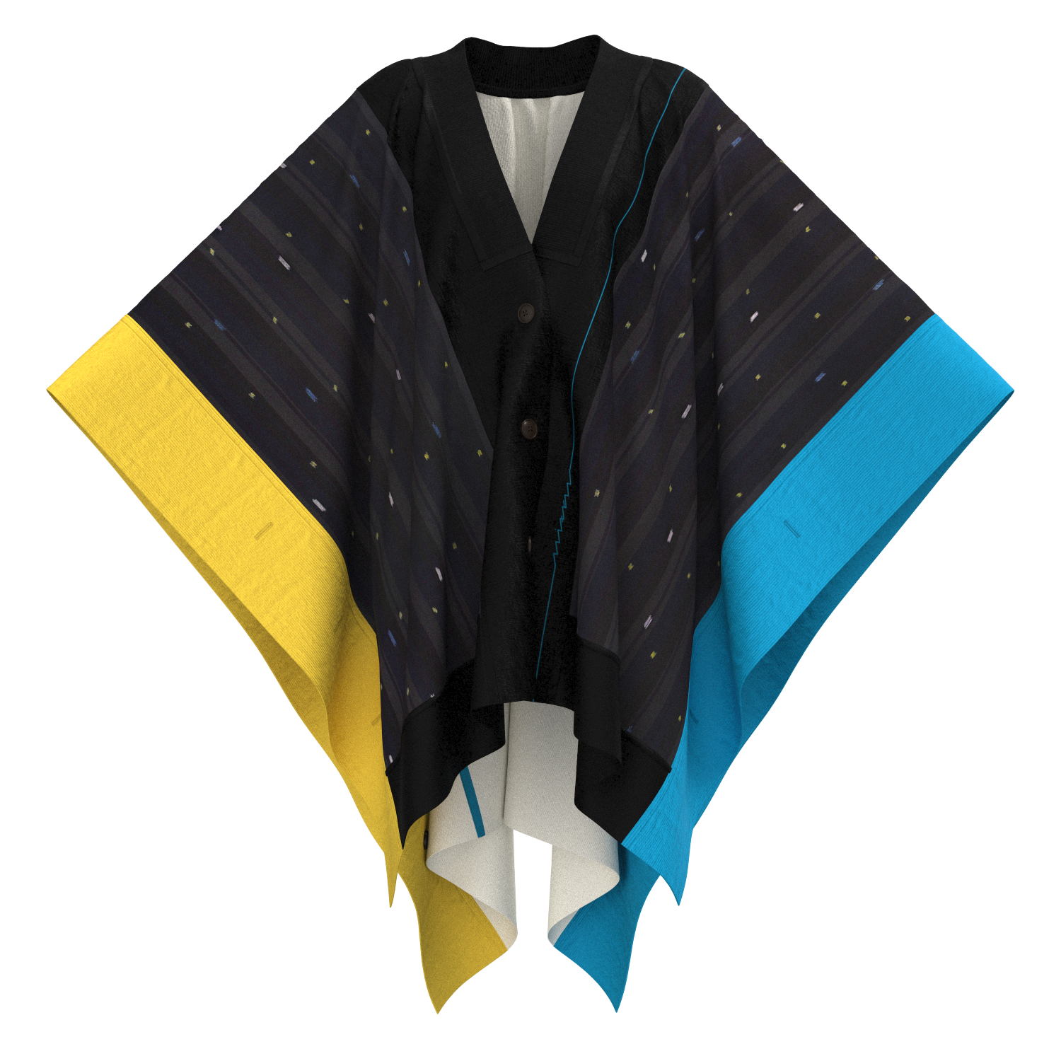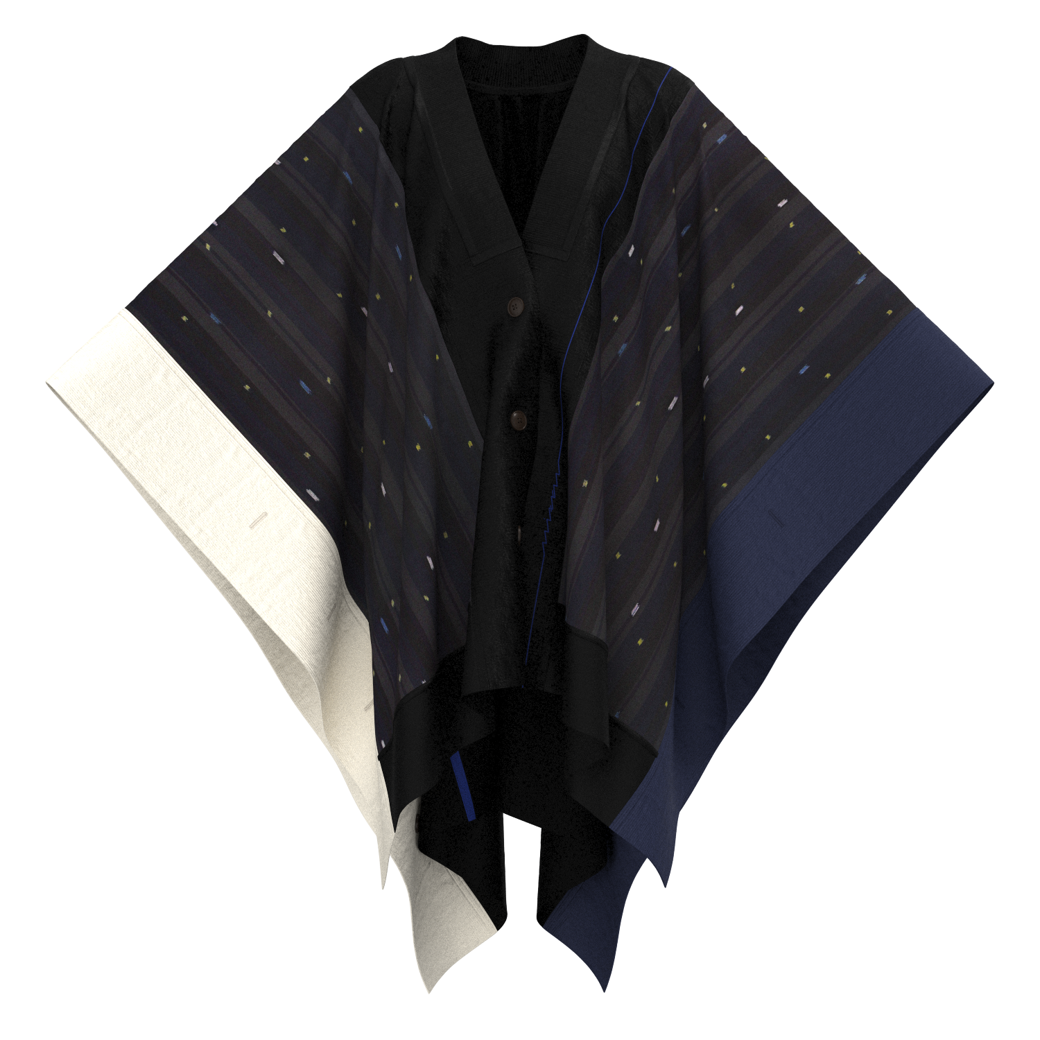 KIMONOニット スクエアケープ - 久留米絣 ミッドナイト