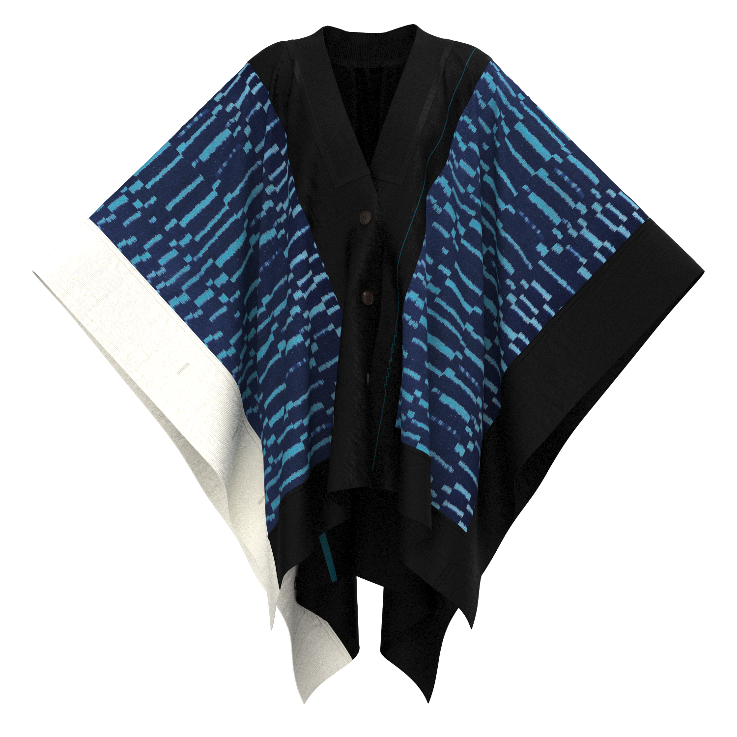 KIMONOニット スクエアケープ - 久留米絣 板絣(特)波ブロック