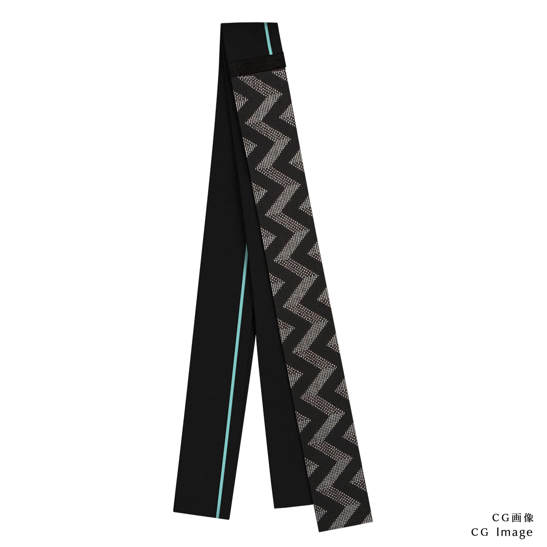 帯状のキモノとニットをニットパイピングで組み合わせ、二つ折りに仕立てたタイ。