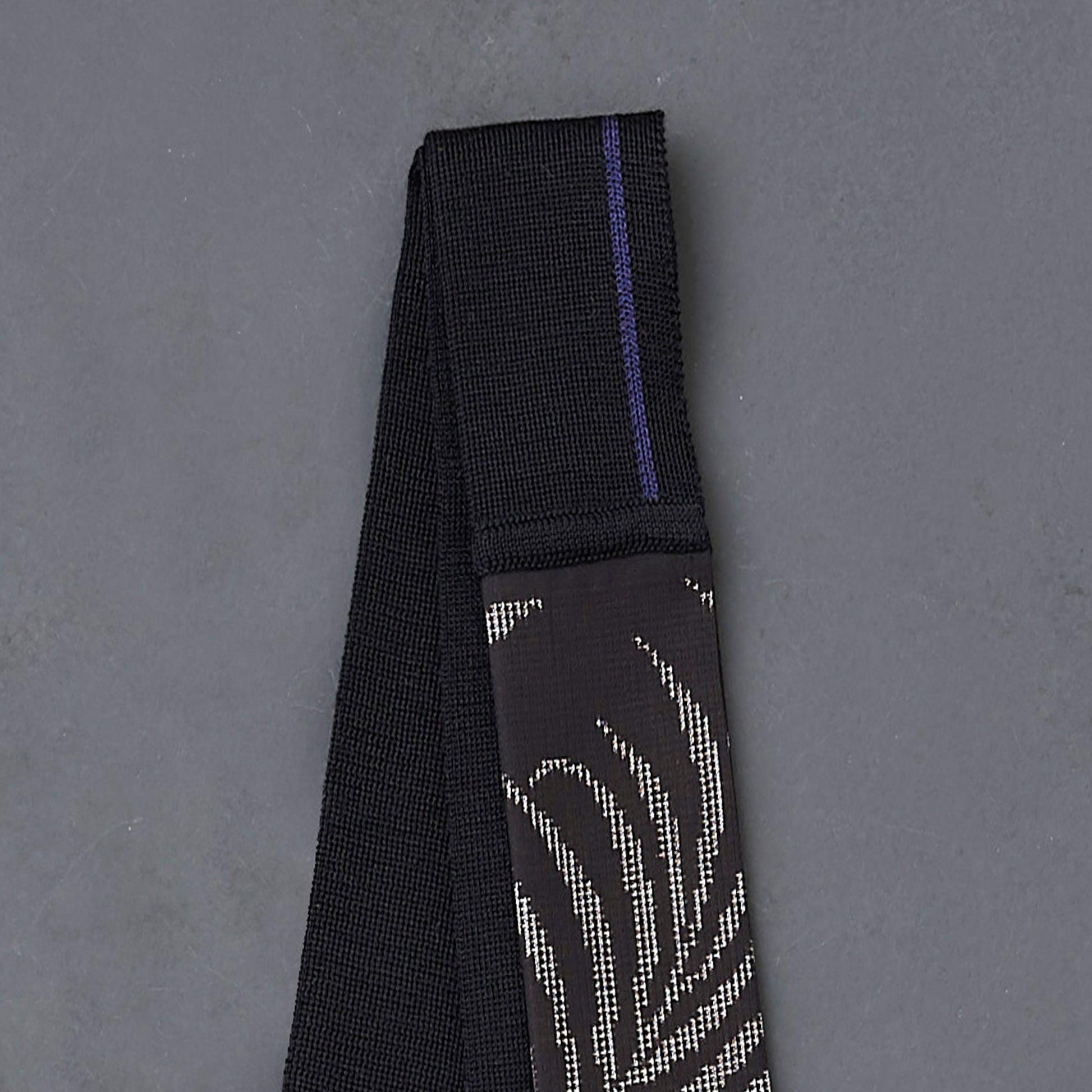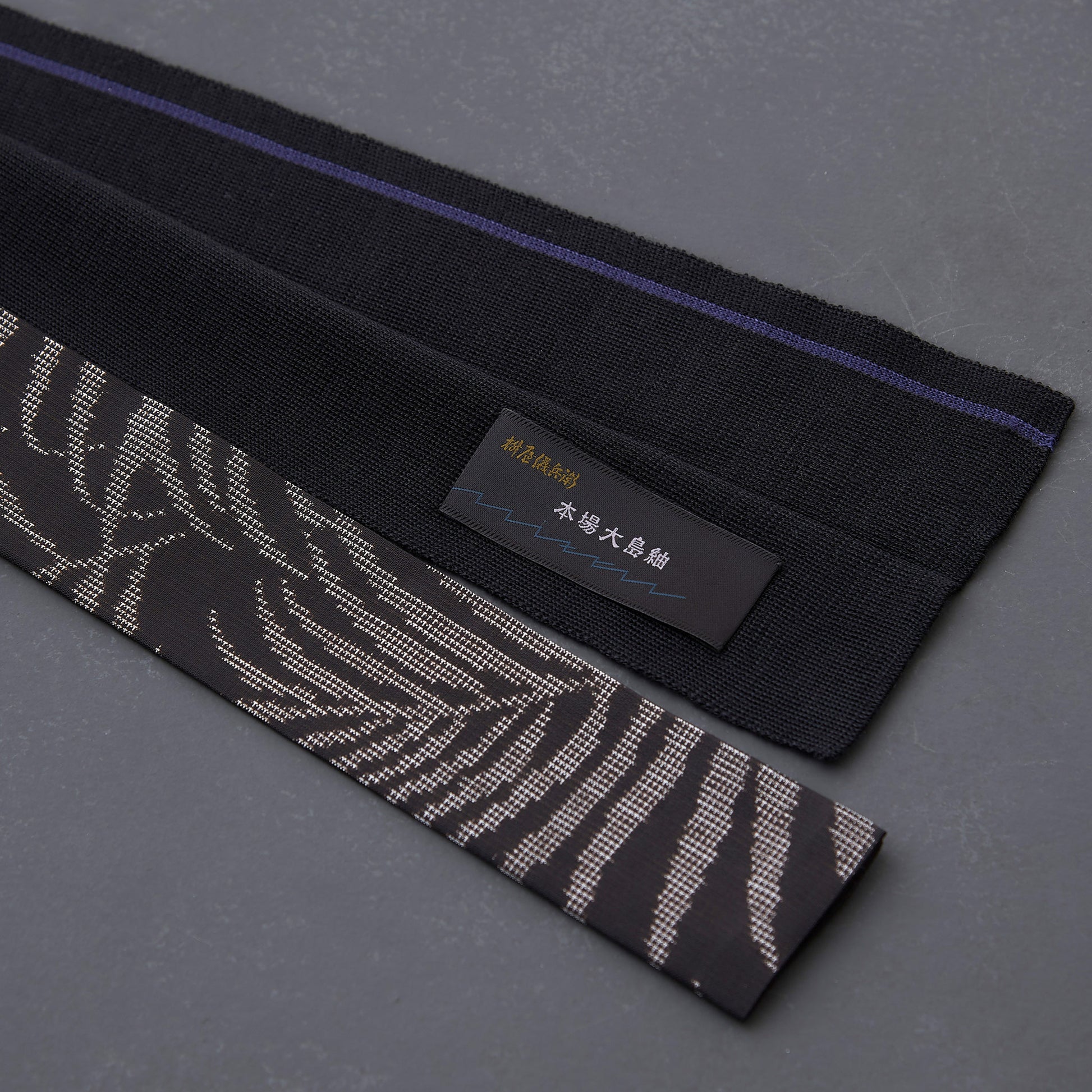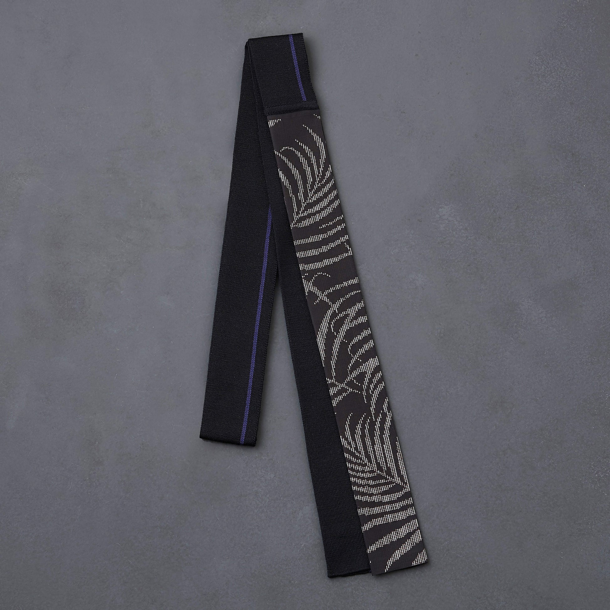 帯状のキモノとニットをニットパイピングで組み合わせ、二つ折りに仕立てたタイ。