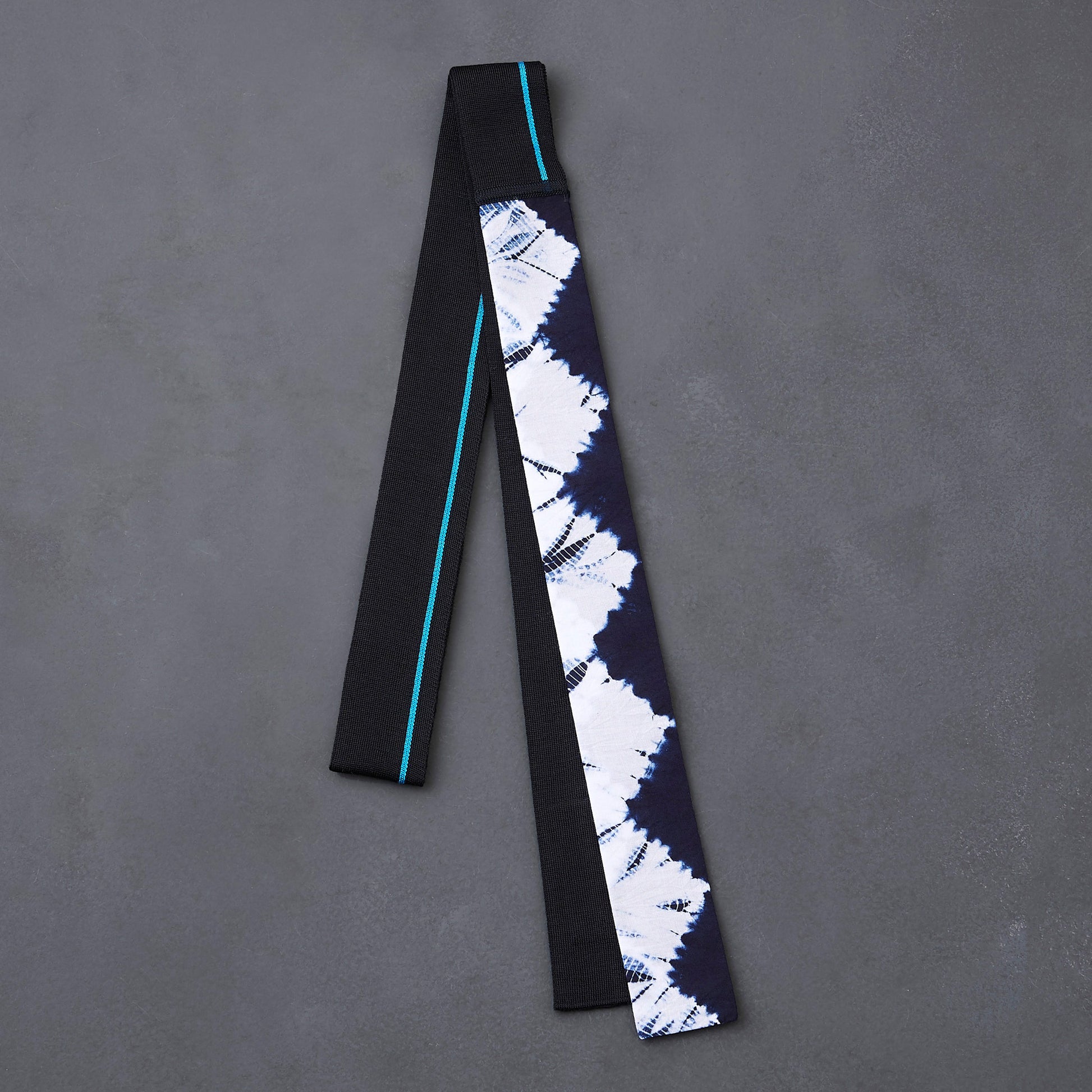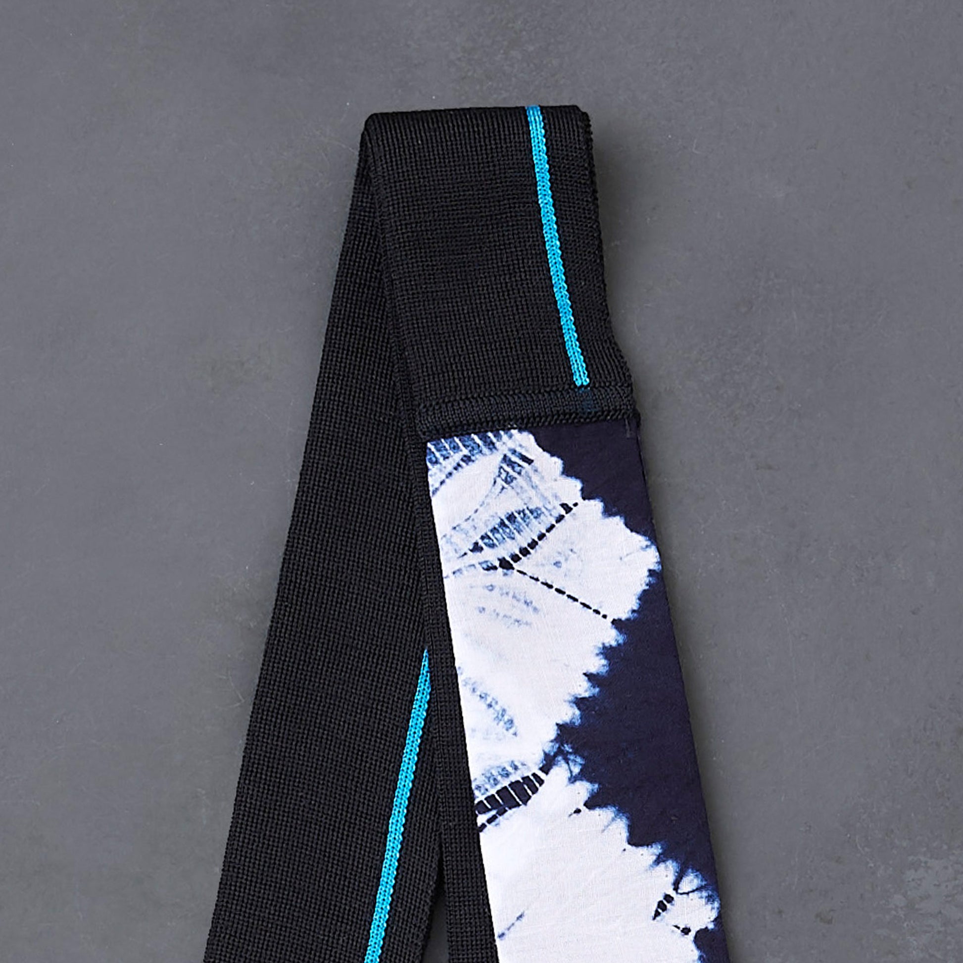 帯状のキモノとニットをニットパイピングで組み合わせ、二つ折りに仕立てたタイ。