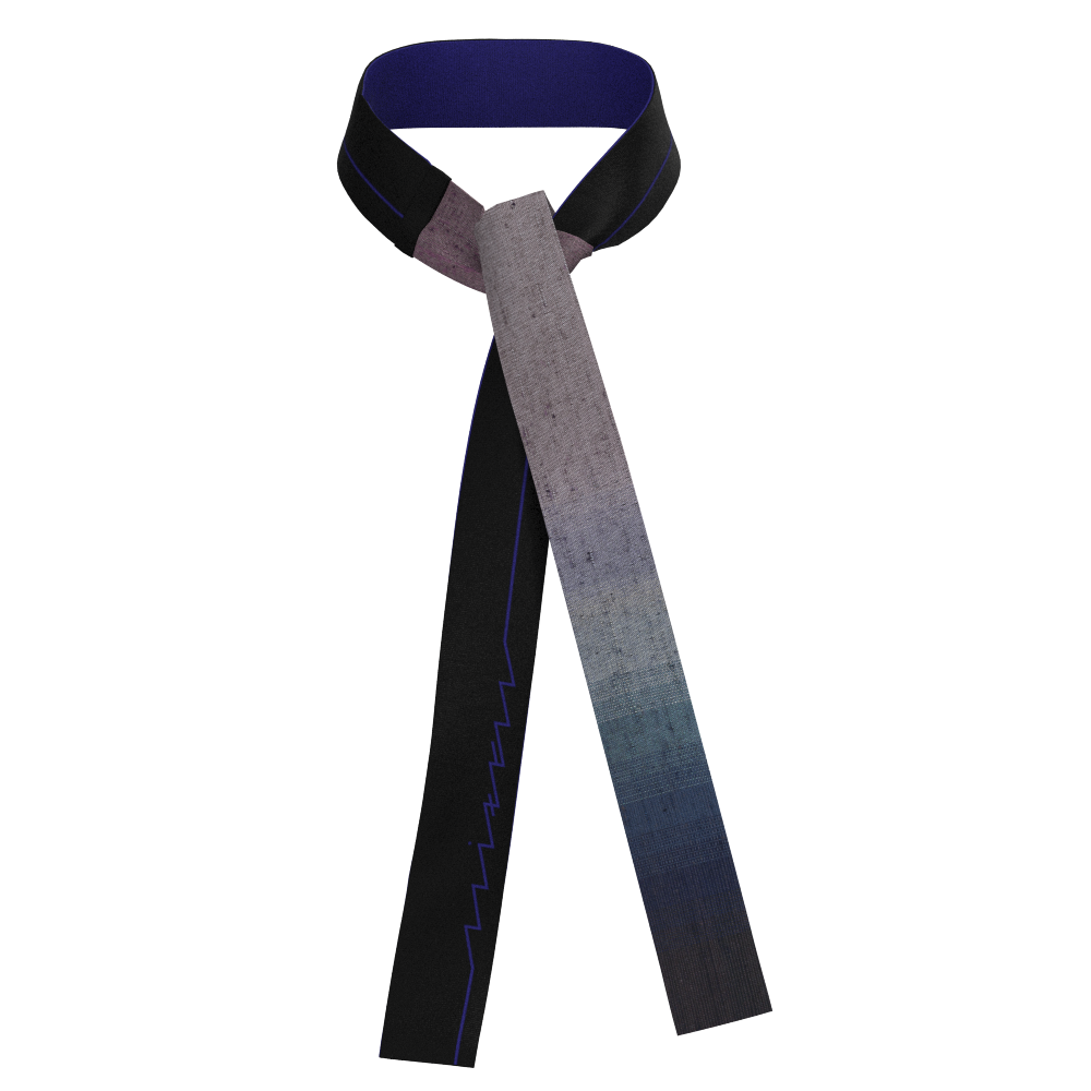 伝統的な着物地と、MIZENのロゴ入りニットを組み合わせたミニタイ。