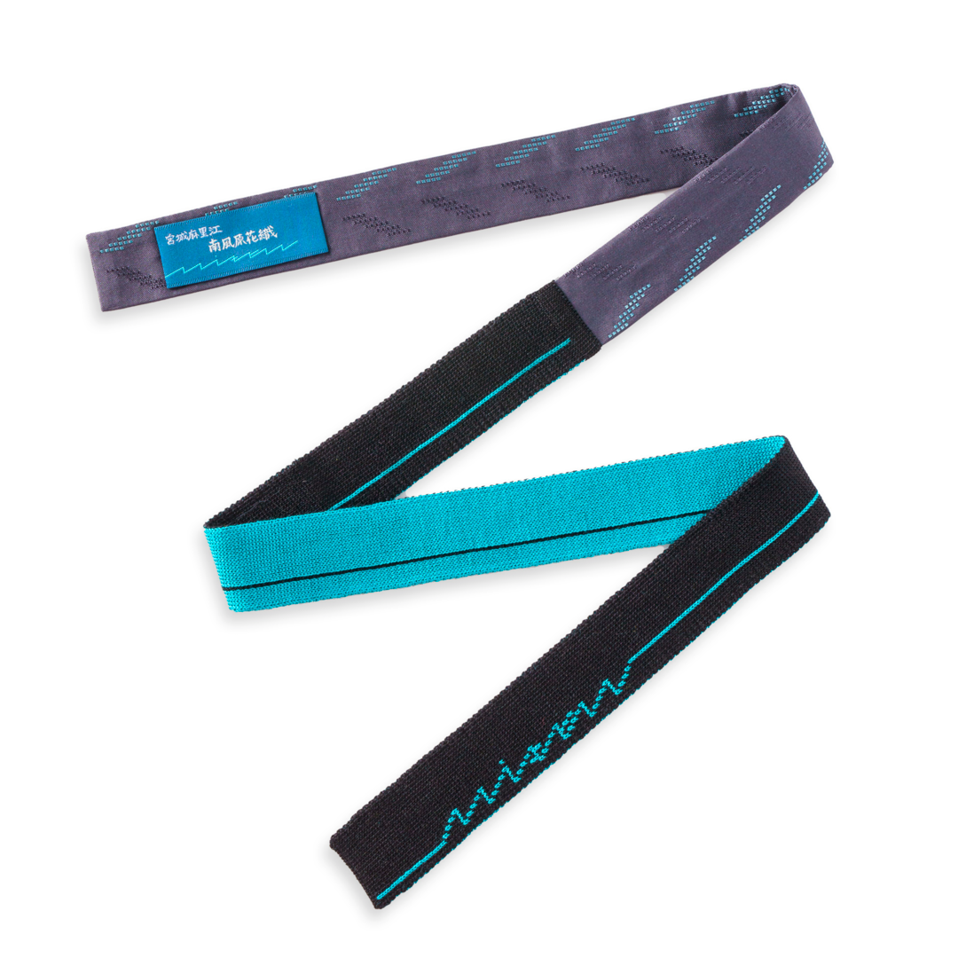 伝統的な着物地と、MIZENのロゴ入りニットを組み合わせたミニタイ。