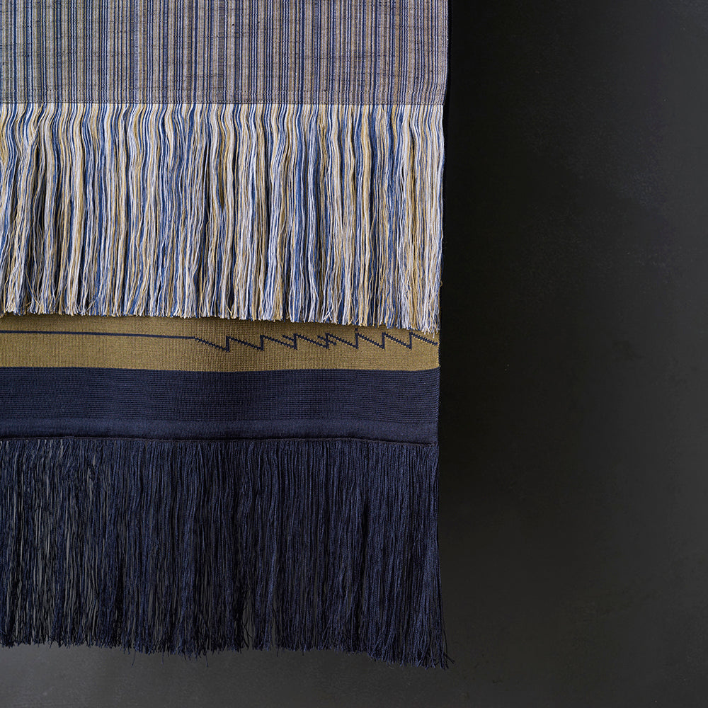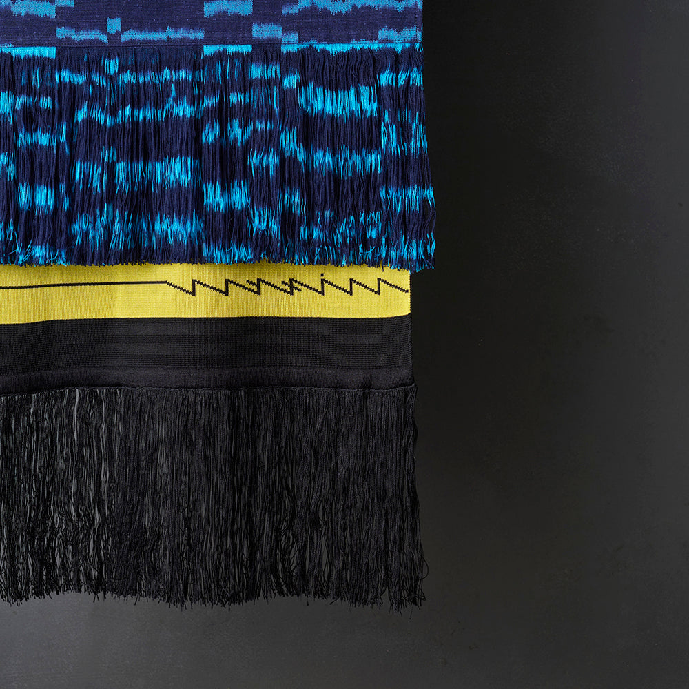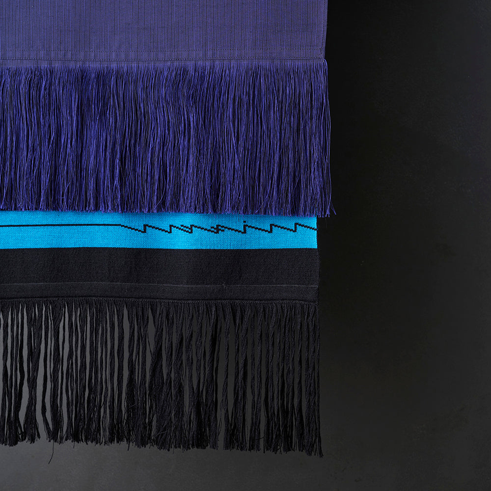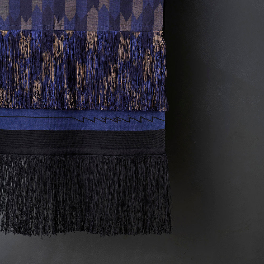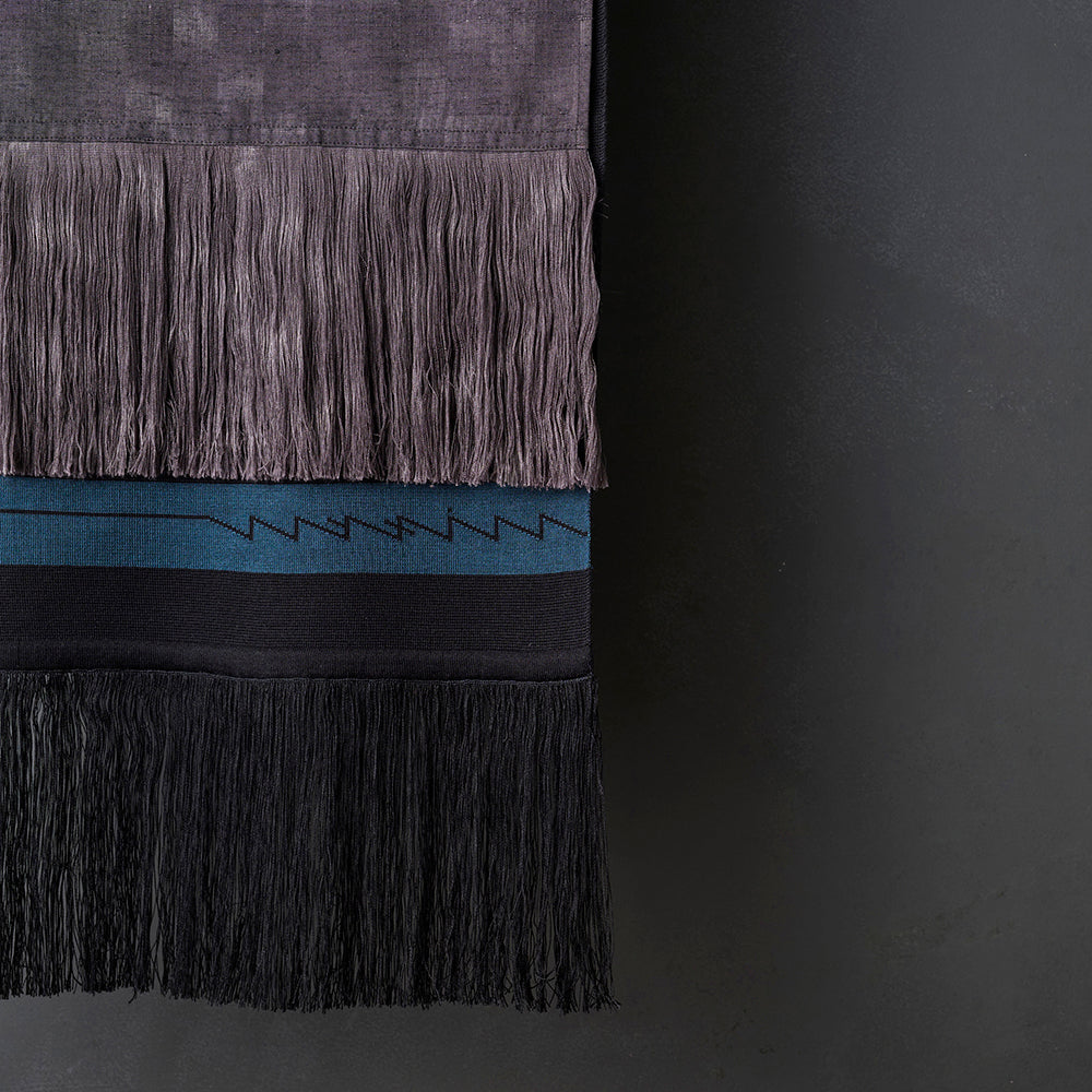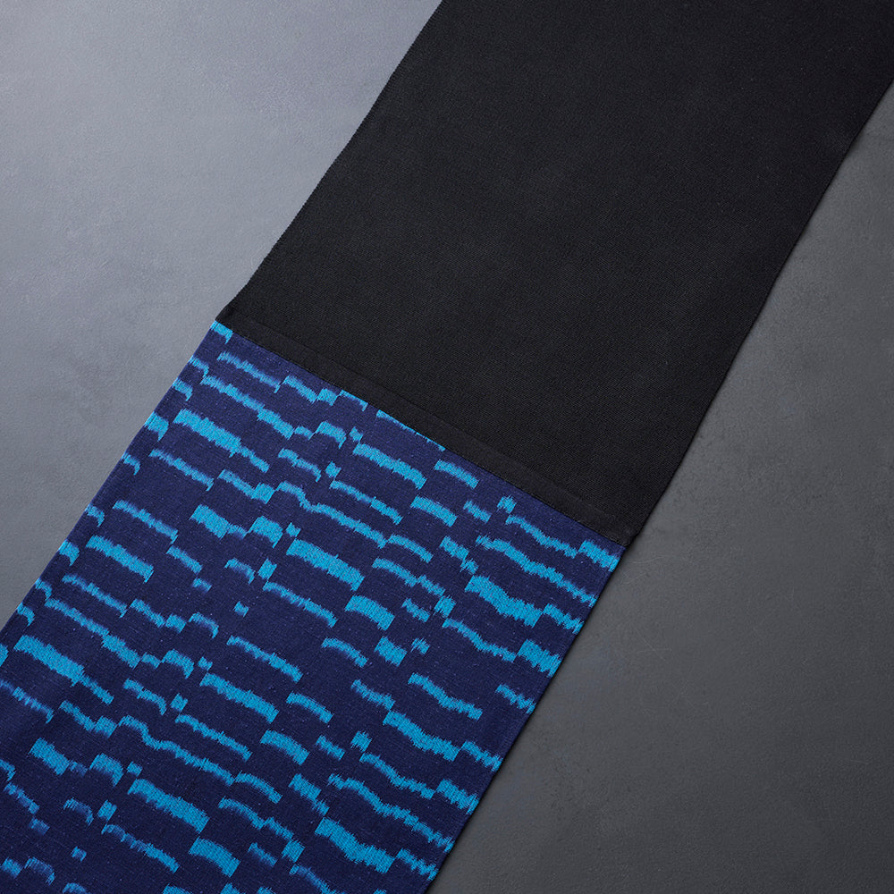 キモノ巾を活かしながら、アシンメトリックな素材感とシンメトリックな形状が特徴で、